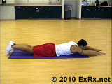 动作要领:该动作可以训练到竖脊肌,也是上班一族放松腰椎与下背部很好的拉伸动作,趴在地上,全身放松,双手与双腿同时升起降下,重复。
