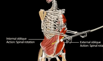 它们的功能,有些与腹直肌相同,影响脊柱的弯曲、伸展、侧屈、稳定腰椎与骨盆,但同时会影响脊柱的旋转。