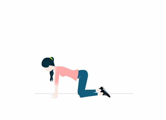 采用跪姿在瑜伽垫上,双手放于肩膀下方,伸直,贴住地面。双腿弯曲,让大腿垂直于地面,膝盖接触地面。腰背部保持稳定,头部与上半身在一条直线上。然后抬起一条腿,向后上方用力伸直,到达顶点作停顿,再收回到原来的位置,抬起另一条腿,向后上方用力伸直,双腿交换进行。