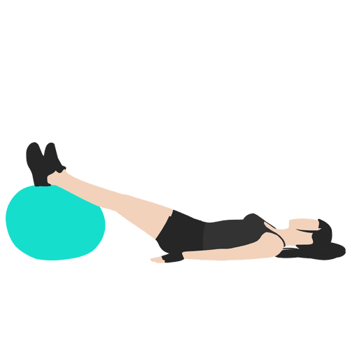 这个动作主要刺激臀大肌,采用仰卧的姿势,躺在地面上,双腿伸直,在双脚下方放一只瑜伽球,把身体支撑起来。双臂放在身体两侧,伸直手臂贴紧地面,然后向上抬起下背部和臀部,让它们离开地面。作停顿以后再蹬直双腿,让下背部接触地面,但臀部不要接触地面,重复进行。